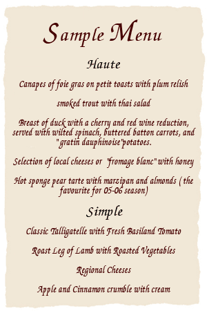 Whilst we can ensure that all of the food you will be served will be up to the highest quality we are proud to offer a choice of menus if the whole chalet is taken – eight people or more. You can choose from menus such as ‘haute cuisine’ or ‘quality simple dining’. We will endeavor to cater for most dietary requirements.